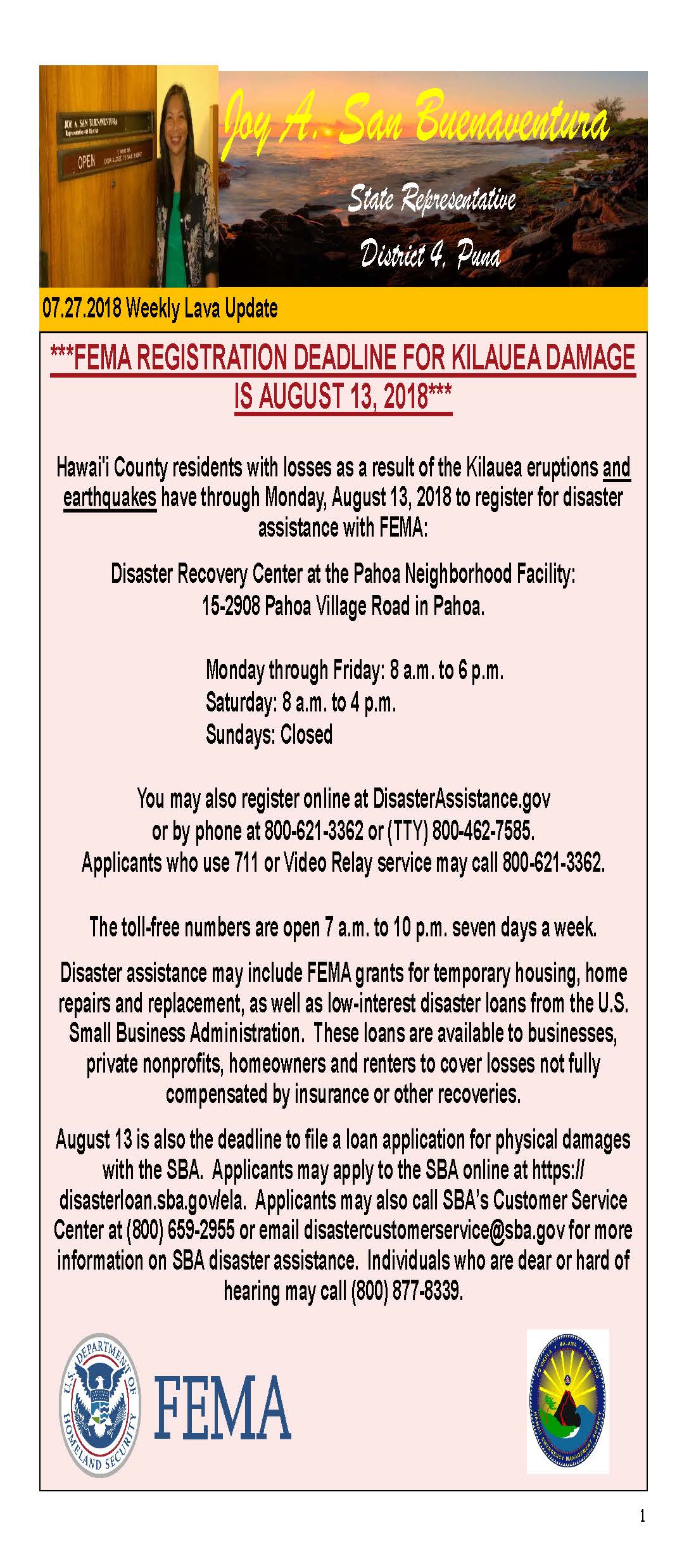 E-Newsletter Update from the Office of Representative Joy San Buenaventura