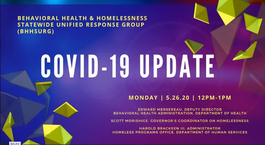 Behavioral Health & Homelessness Statewide Unified Response Group (BHHSURG). We met via teleconference as
