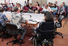 HONOLULU, Hawai‘i - Citizens For A Fair ADA Ride (CFADAR) held its quarterly meeting at the State Capitol on Tues., August 9, 2016, allowing the community a chance to meet face-to-face with representatives of the city's Department of Transportation Services (DTS) and the O‘ahu Transit Services. State Senator Breene Harimoto (Dist. 16 - Pearl City, Momilani, Pearlridge, ‘Aiea, Royal Summit, ‘Aiea Heights, Newtown, Waimalu, Halawa, Pearl Harbor) was among those who attended the meeting where there was a lively discussion regarding the concerns and issues on the variety of programs available to people with disabilities.